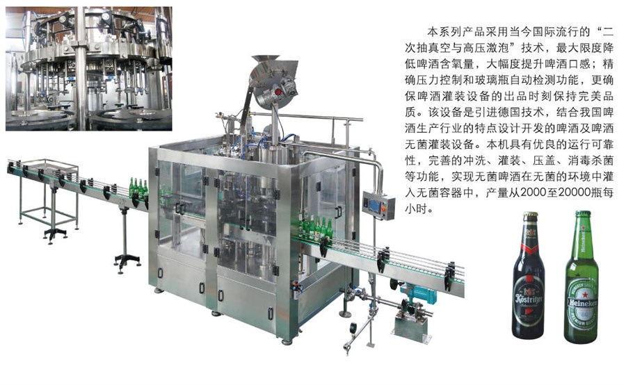 玻璃瓶啤酒沖洗灌裝壓蓋三合一機