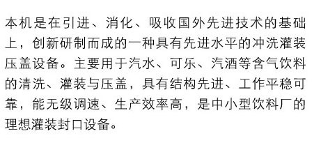玻璃瓶飲料沖洗、灌裝、壓蓋三合一機