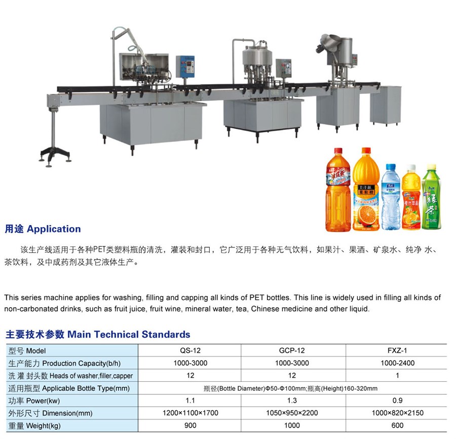玻璃瓶飲料沖洗、灌裝、壓蓋三合...