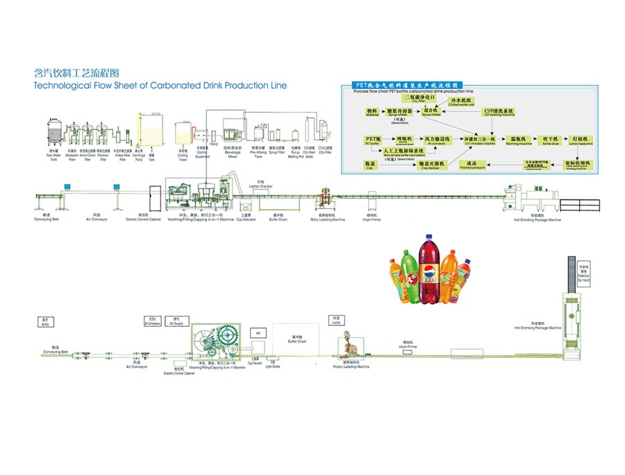 含汽飲料工藝流程圖 玻璃瓶/易拉罐啤酒飲料灌裝生產(chǎn)線